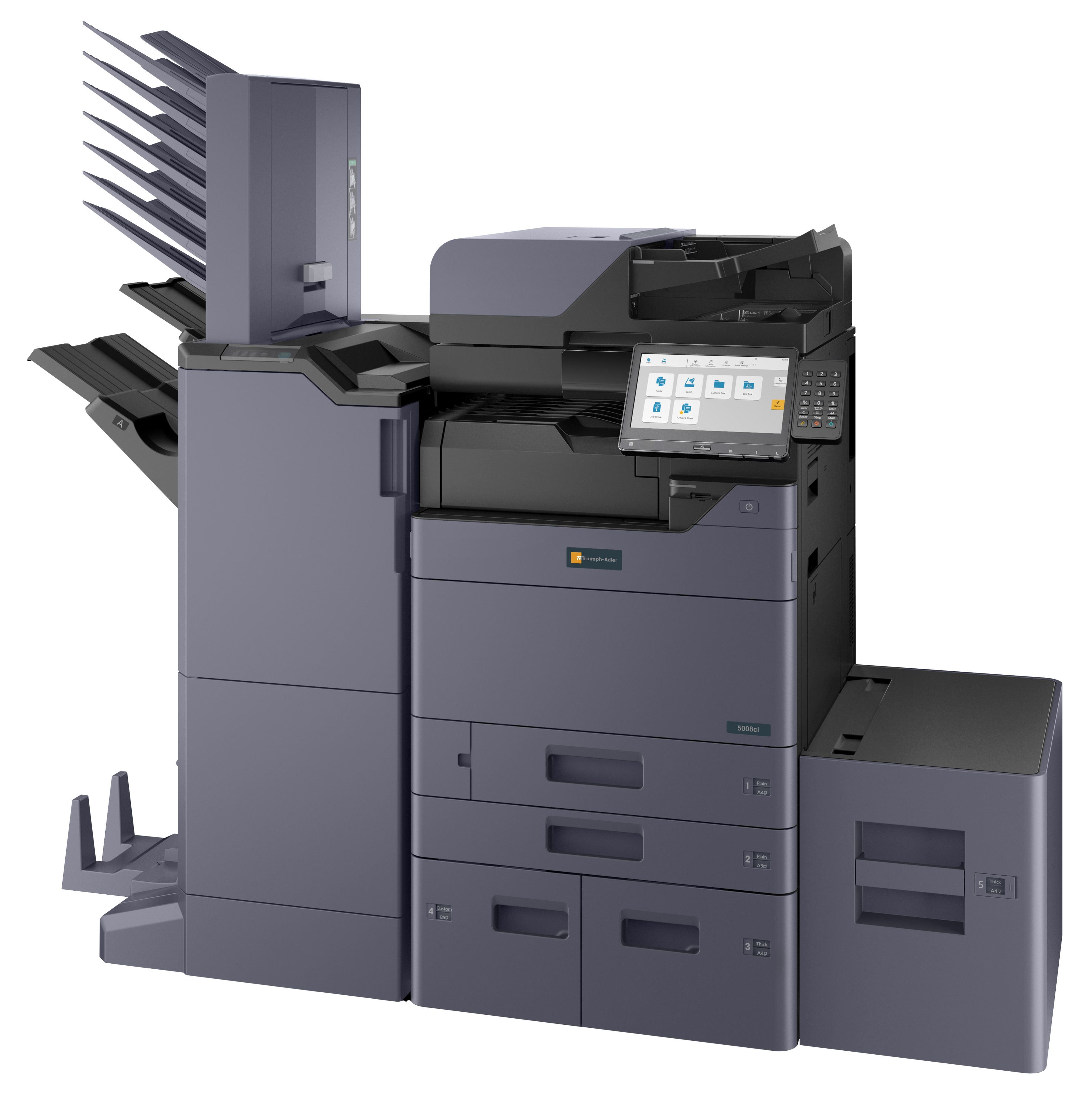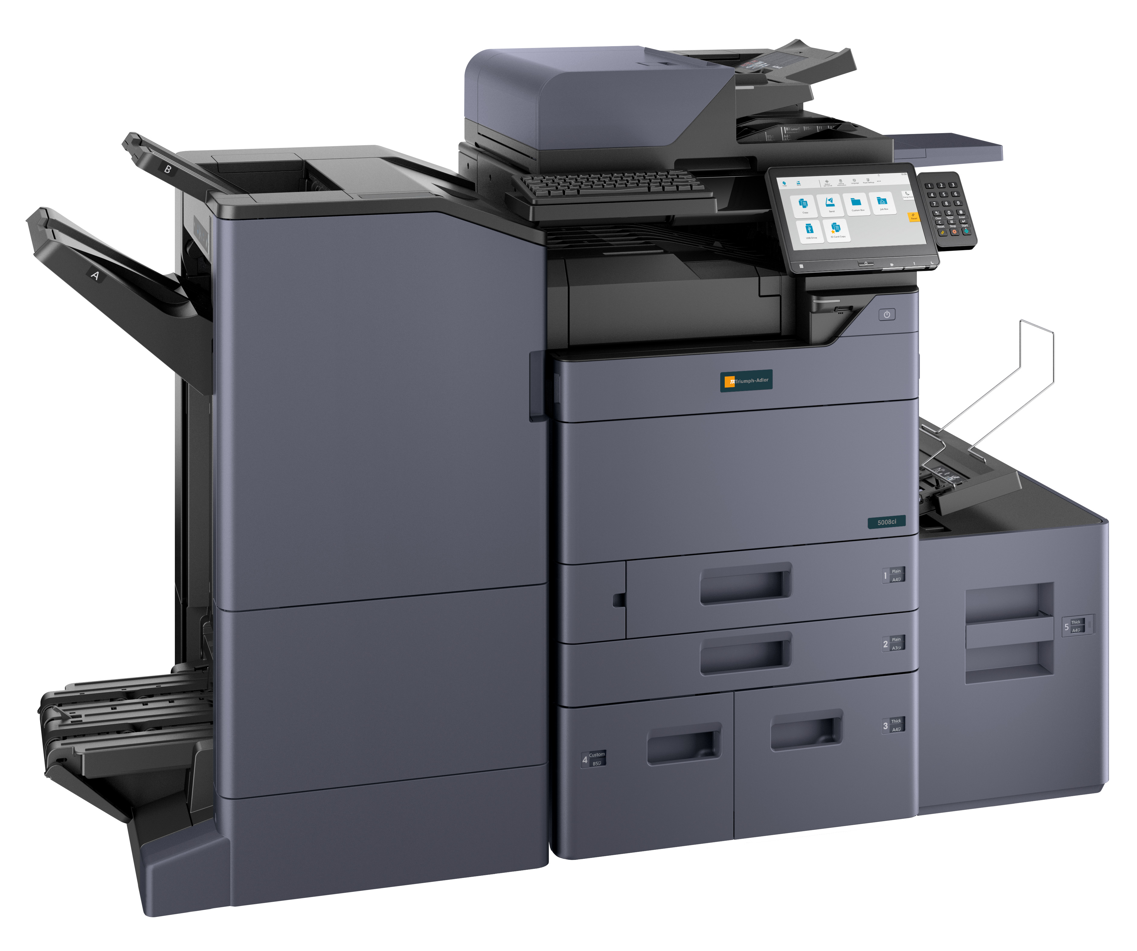 - PapierzufuhrPF-7140 (2 x 500 Blatt Universalkassetten [DIN A5R-SRA3]), PF-7150 (2 x 1.500 Blatt Großraumkassetten [DIN A4]), PF-7120 (3.000 Blatt seitliches Großraummagazin [DIN A4])