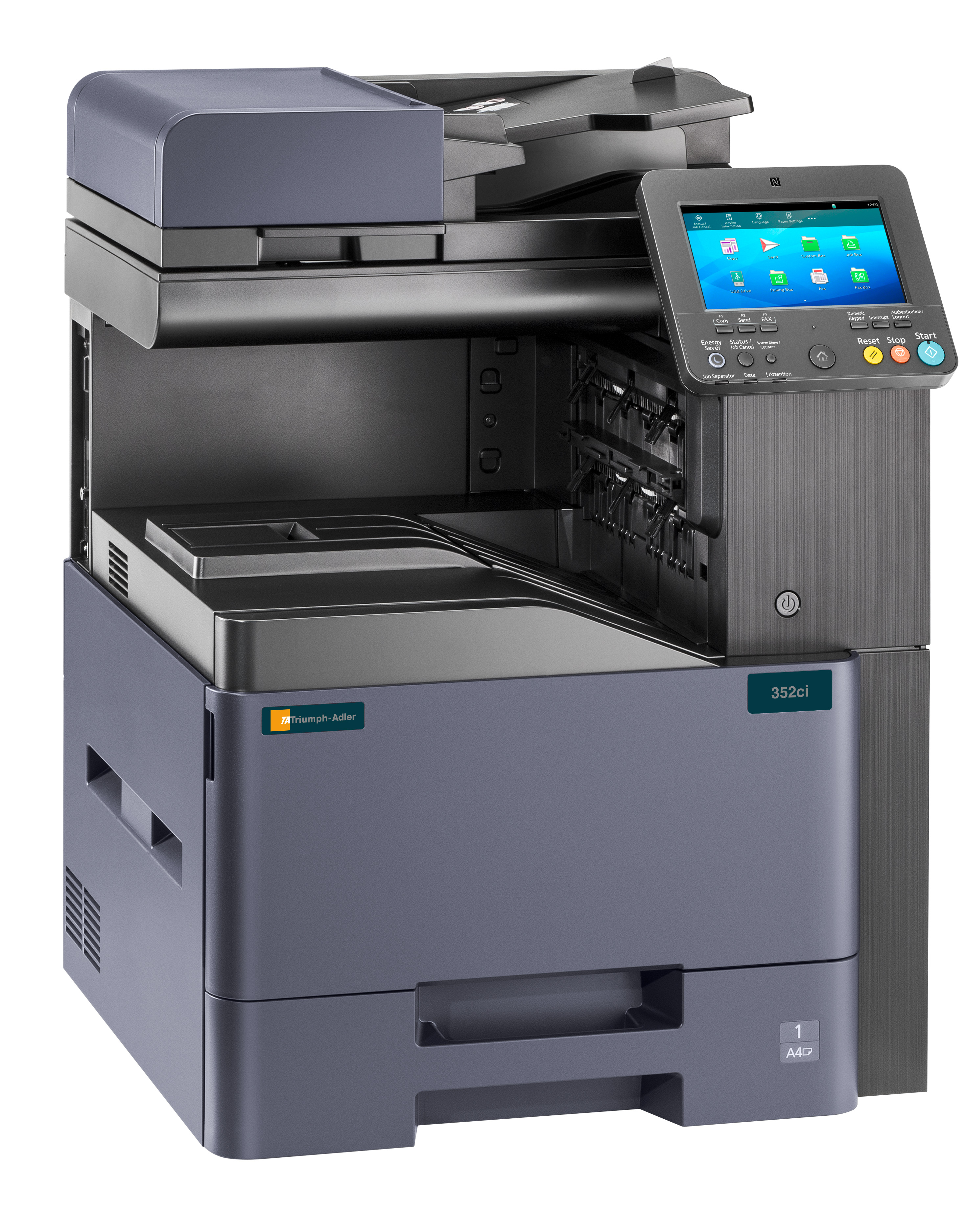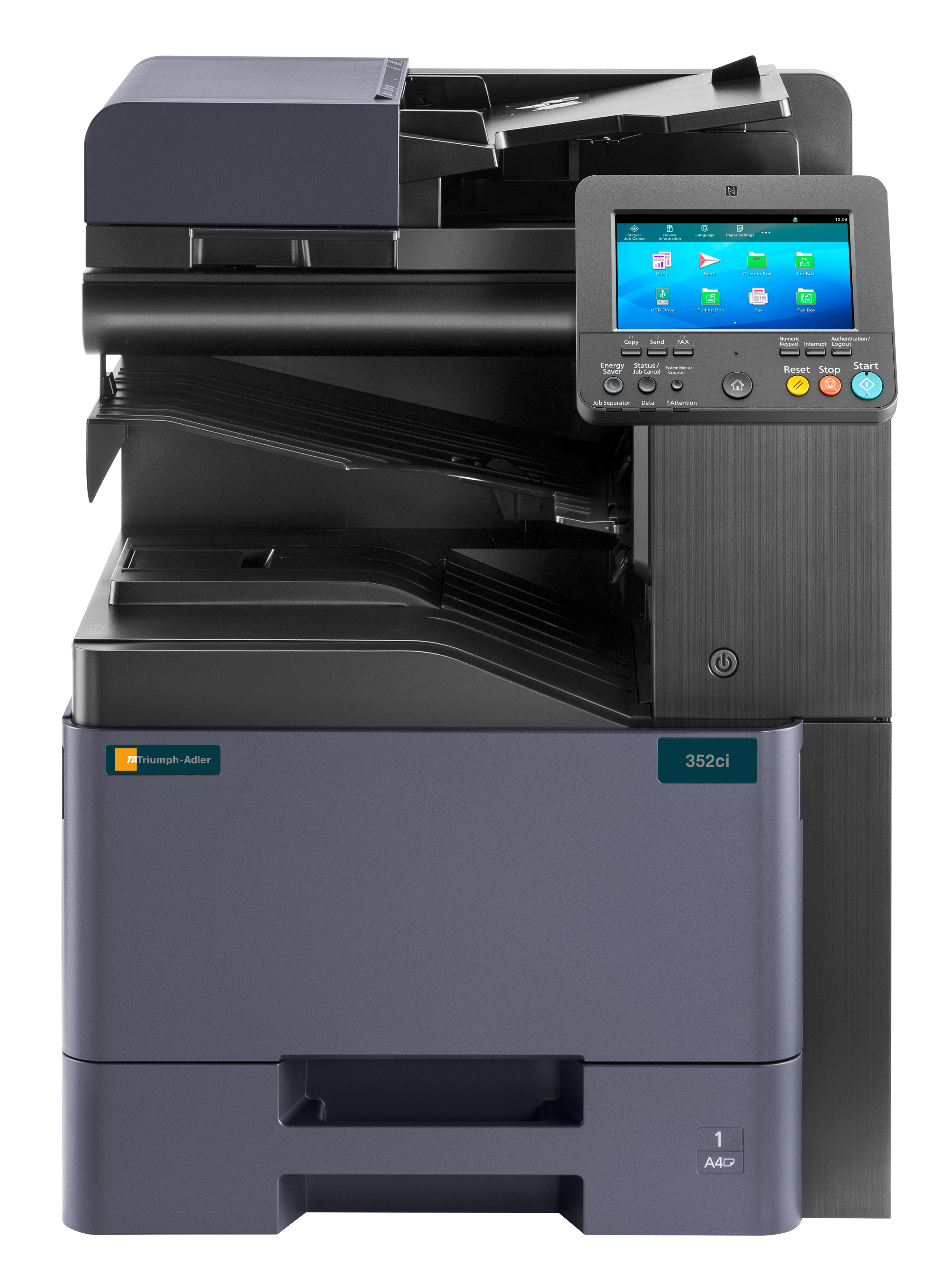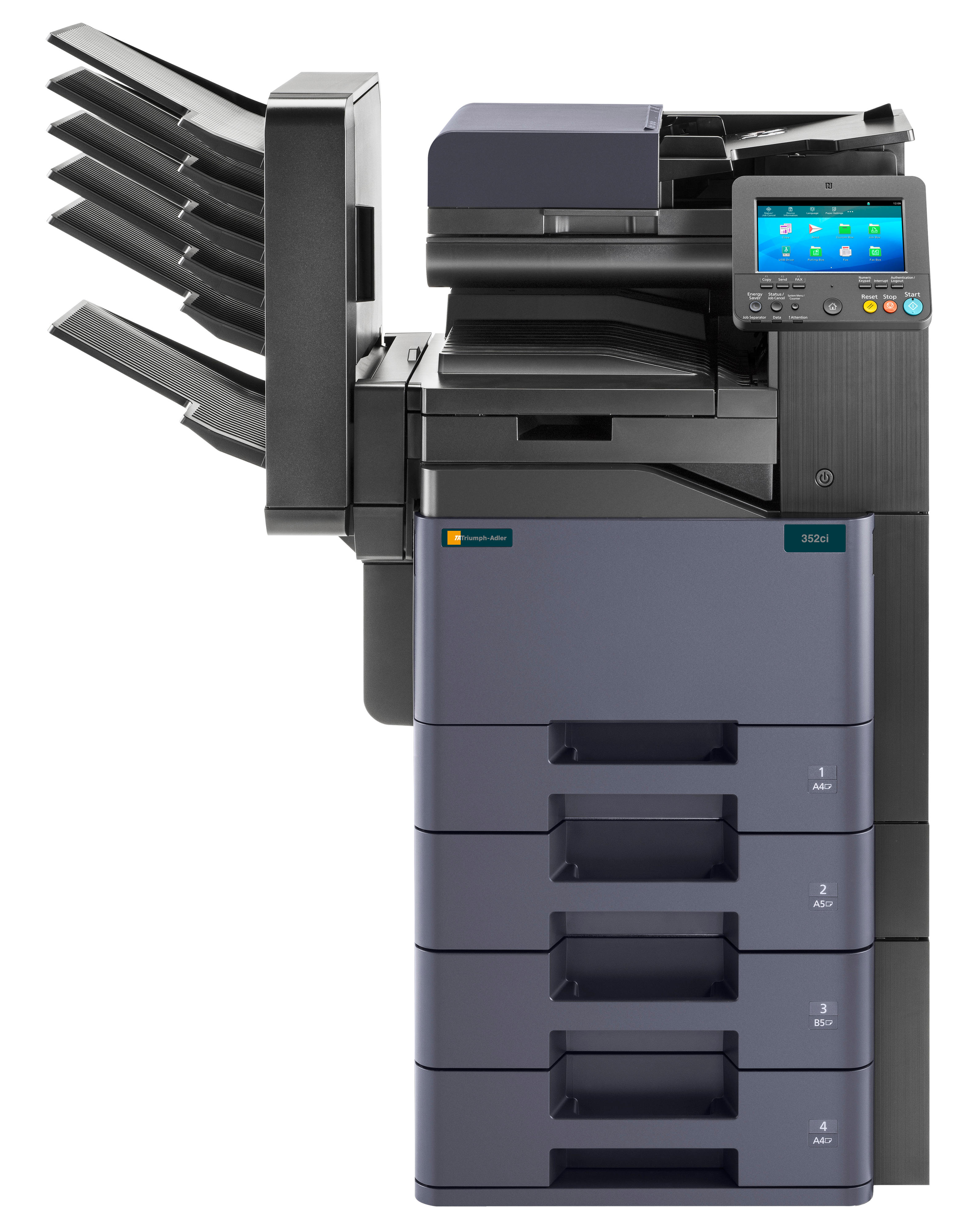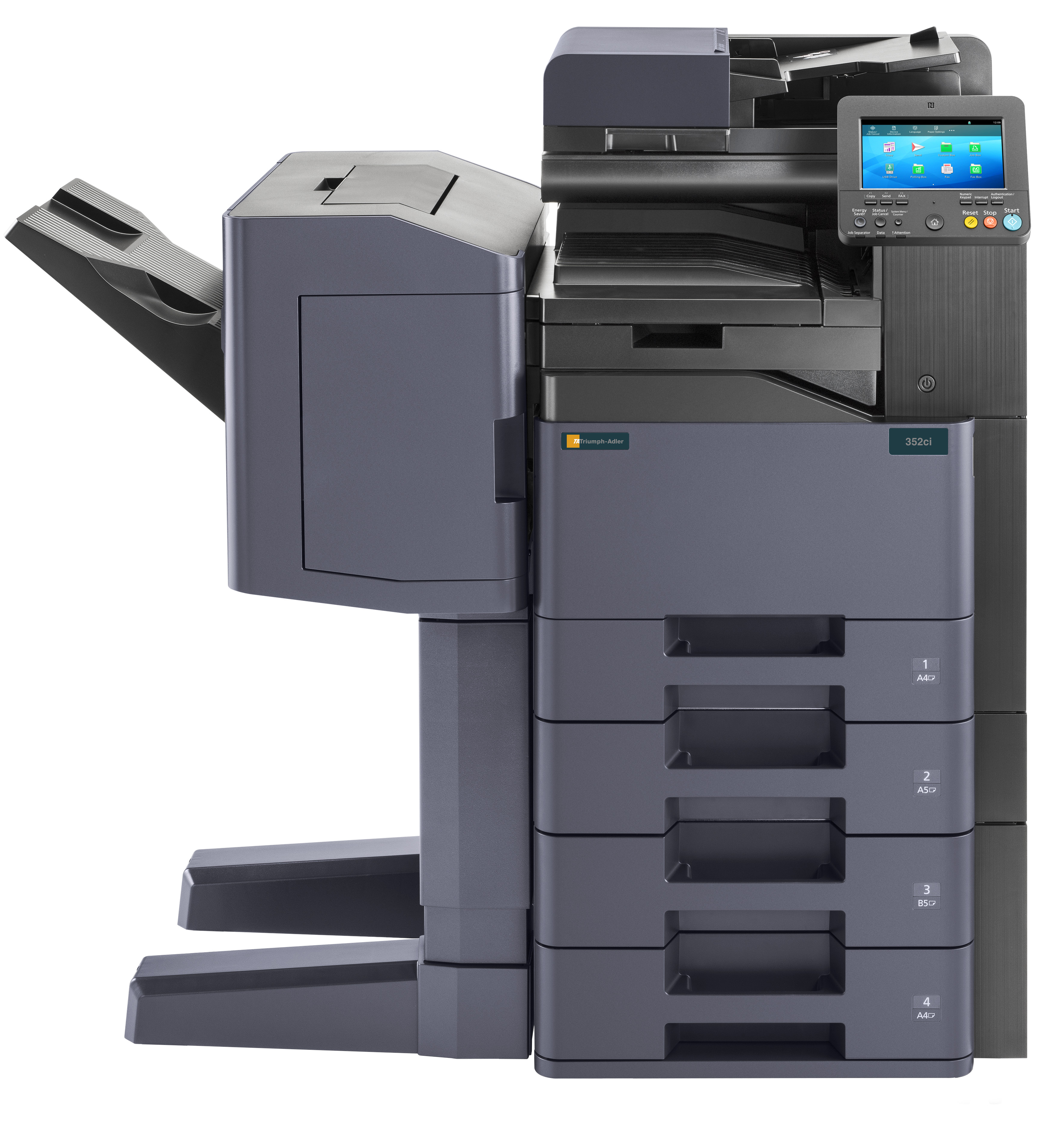 Der 352ci unterstützt Sie tatkräftig bei der Bewältigung Ihrer Alltagsroutinen im Büro. Mit 35 DIN-A4-Farbseiten/Minute arbeitet er äußerst zügig und erstellt optional sogar textdurchsuchbare Dateien, damit archivierte Daten schnell wieder aufgefunden werden können. Darüberhinaus bietet er zahlreiche professionelle Endverarbeitungsoptionen und kommuniziert per NFC oder Wi-Fi. Seine intuitive Bedienung und seine hohen Standards in Bezug auf Datensicherheit runden sein Profil perfekt ab.