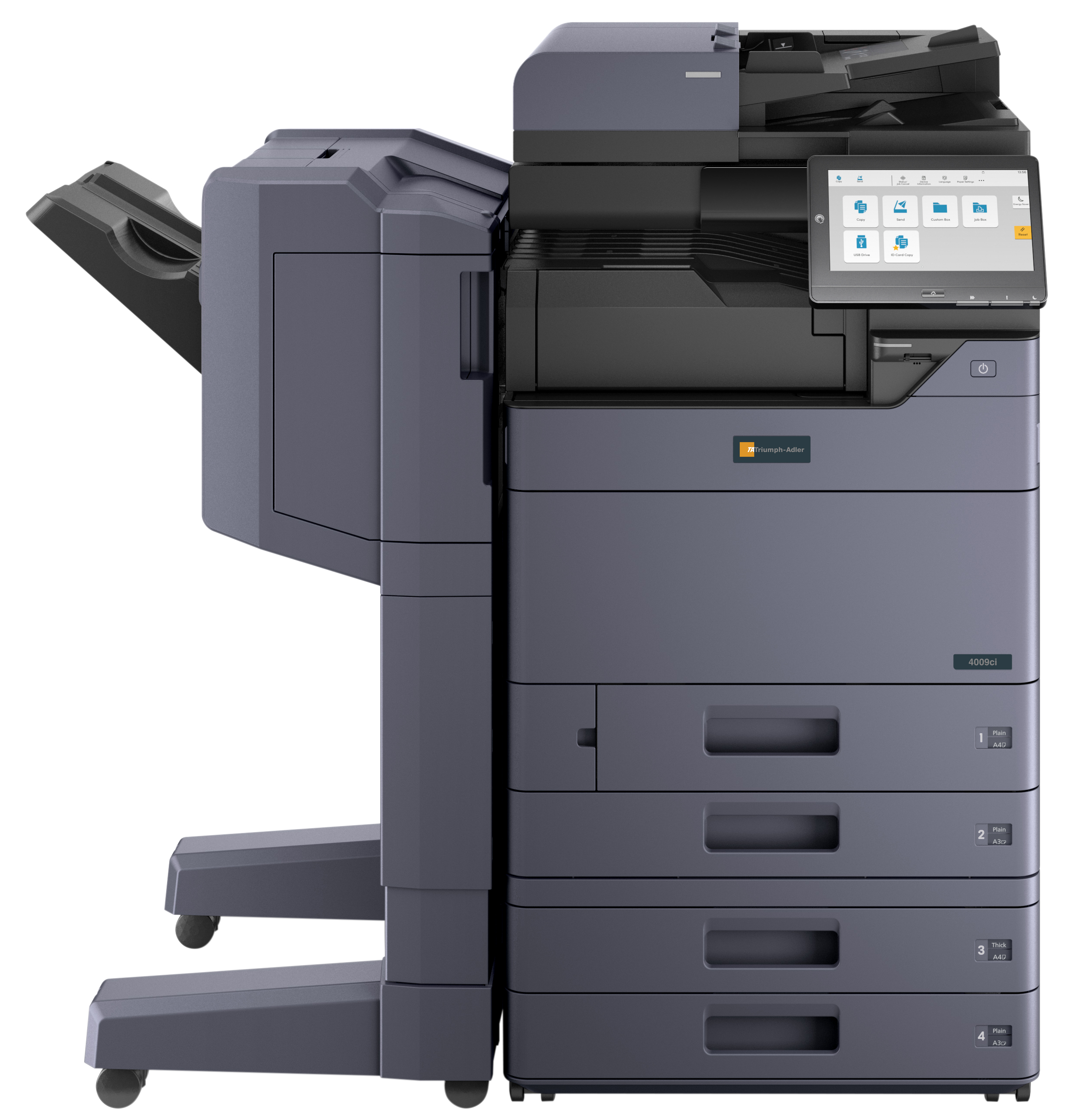 - FinisherDF-7100 Interner Finisher (Kapazität: 500 Blatt DIN A4, Heftung max. 50 Blatt DIN A4), DF-7120 (Kapazität: 1.000 Blatt DIN A4, Heftung max. 50 Blatt DIN A4), PH-7120 Locheinheit für DF-7100, PH-7C Locheinheit für DF-7120/7140, BF-730 Broschürenfaltmodul für DF-7140 (Sattelheftung und Faltung max. 20 Blatt DIN A4/A3, Wickelfalz max. 5 Blatt DIN A4), DF-7140 (Kapazität: 4.000 Blatt DIN A4, Heftung max. 65 Blatt DIN A4, MT-730(B) Multi Tray für DF-7140