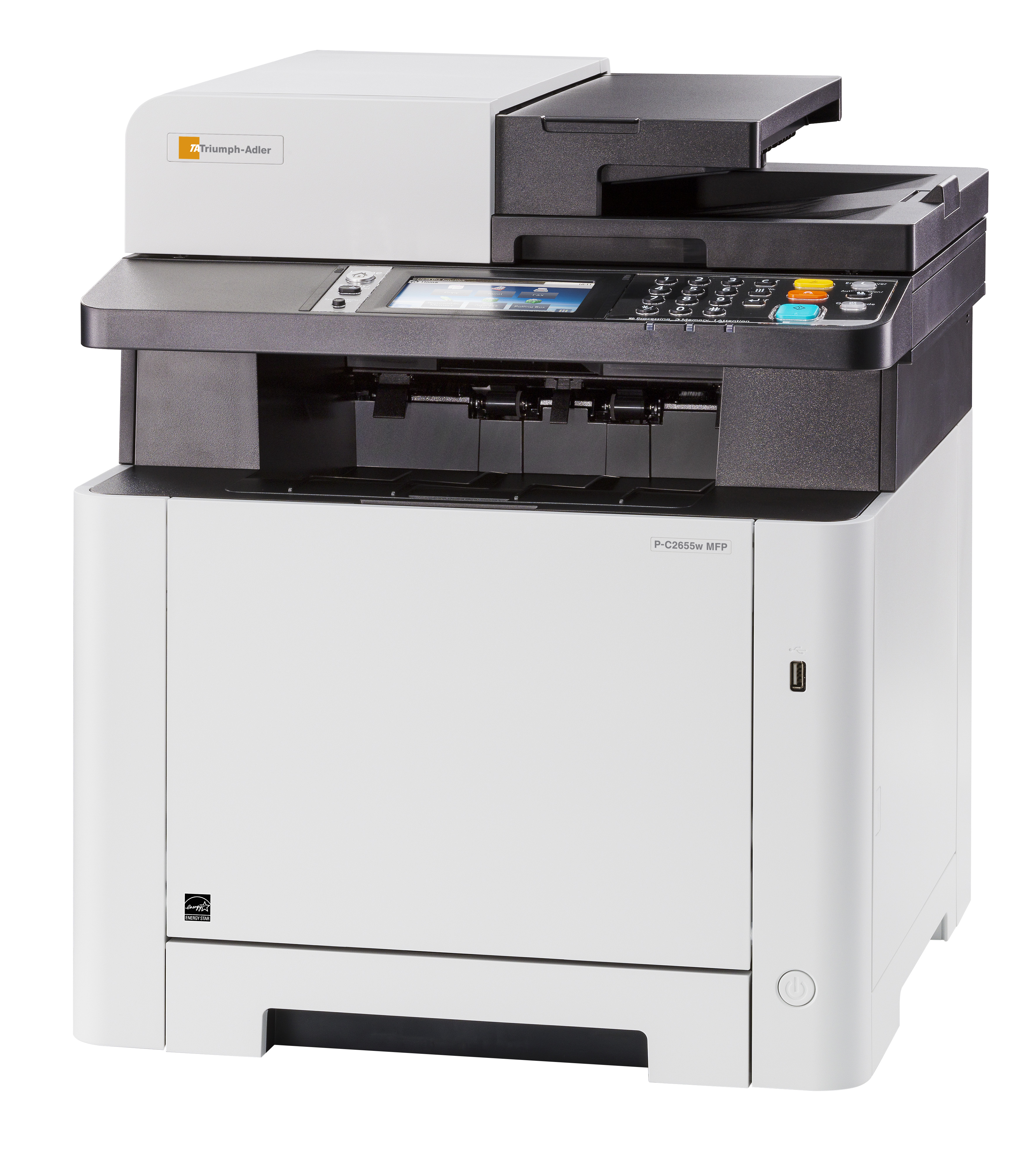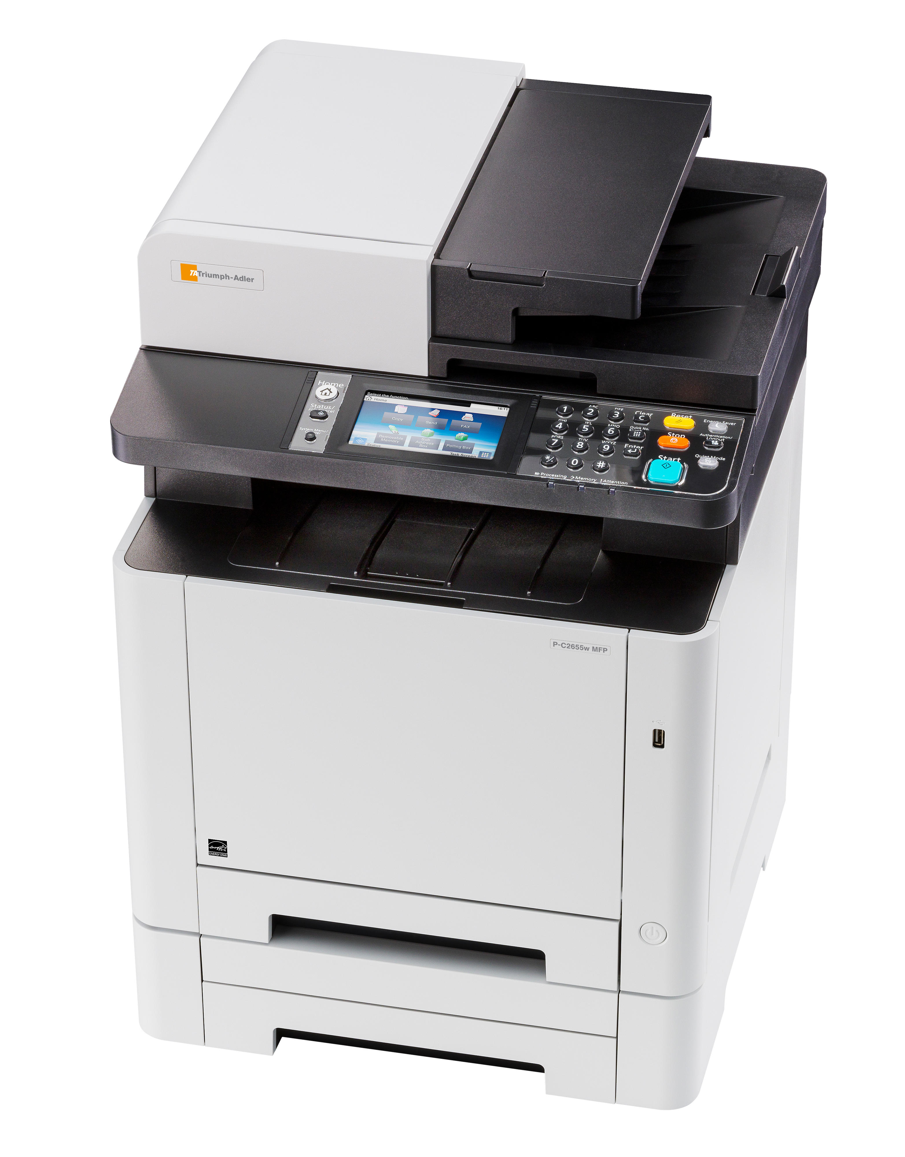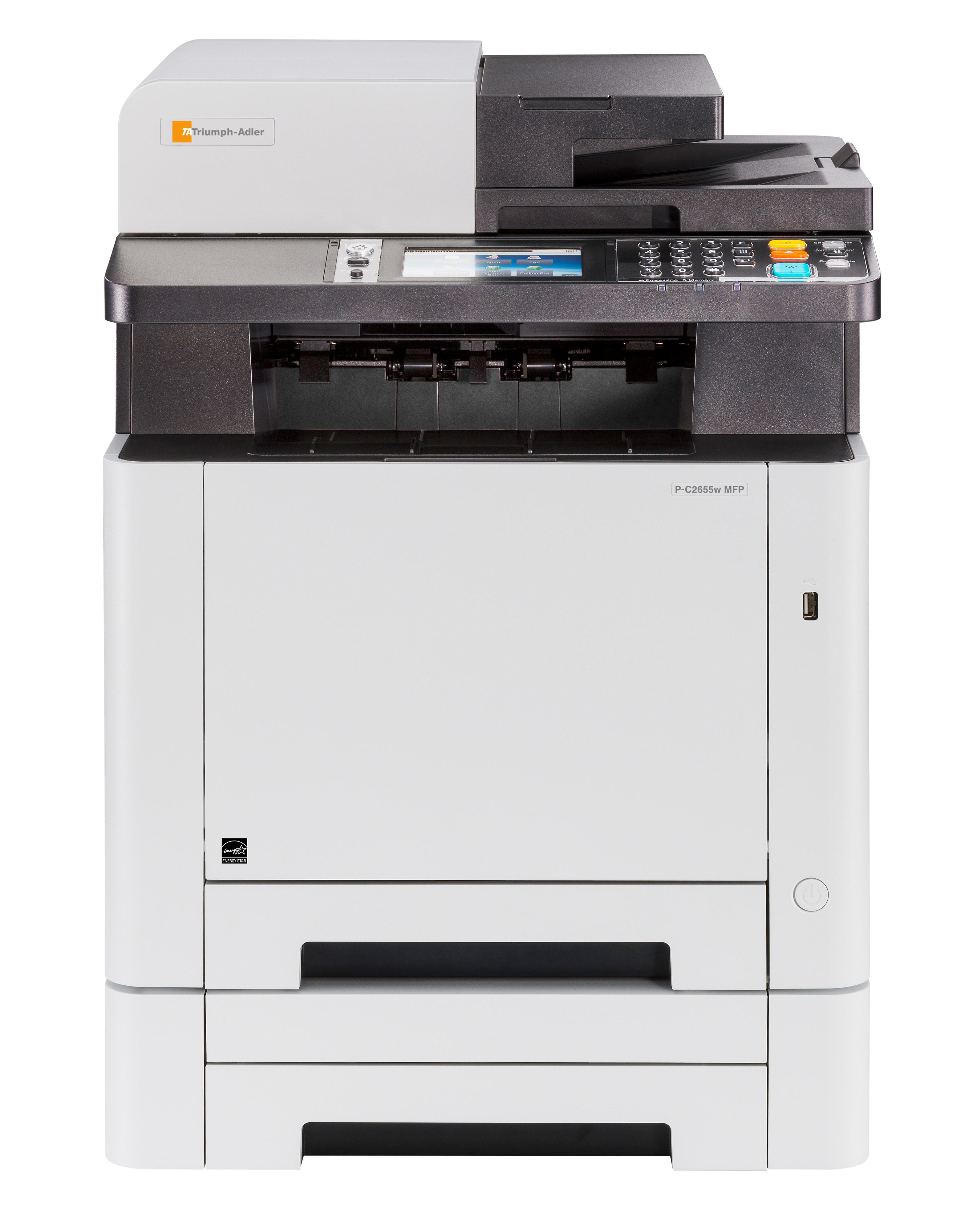 Mit diesem DIN-A4-Farbmultifunktionssystem sind Sie am Arbeitsplatz bestens gerüstet. Es braucht wenig Platz, ist geräuscharm und produktiv und liefert dabei Ausdrucke in brillanter Farbqualität. Denn es druckt mit bis zu 26 DIN-A4-Seiten/Minute und auf Wunsch sogar mit 1.200 x 1.200 dpi. Kopieren, scannen, faxen kann es natürlich auch. Dabei ist seine Bedienung vollkommen benutzerfreundlich dank seines farbigen Touch-Screens. Netzwerk-, Wifi- und USB-Anschlüsse sind selbstverständlich inklusive und über die passenden Apps versteht sich dieses MFP auch bestens mit Smartphones und Tablets.