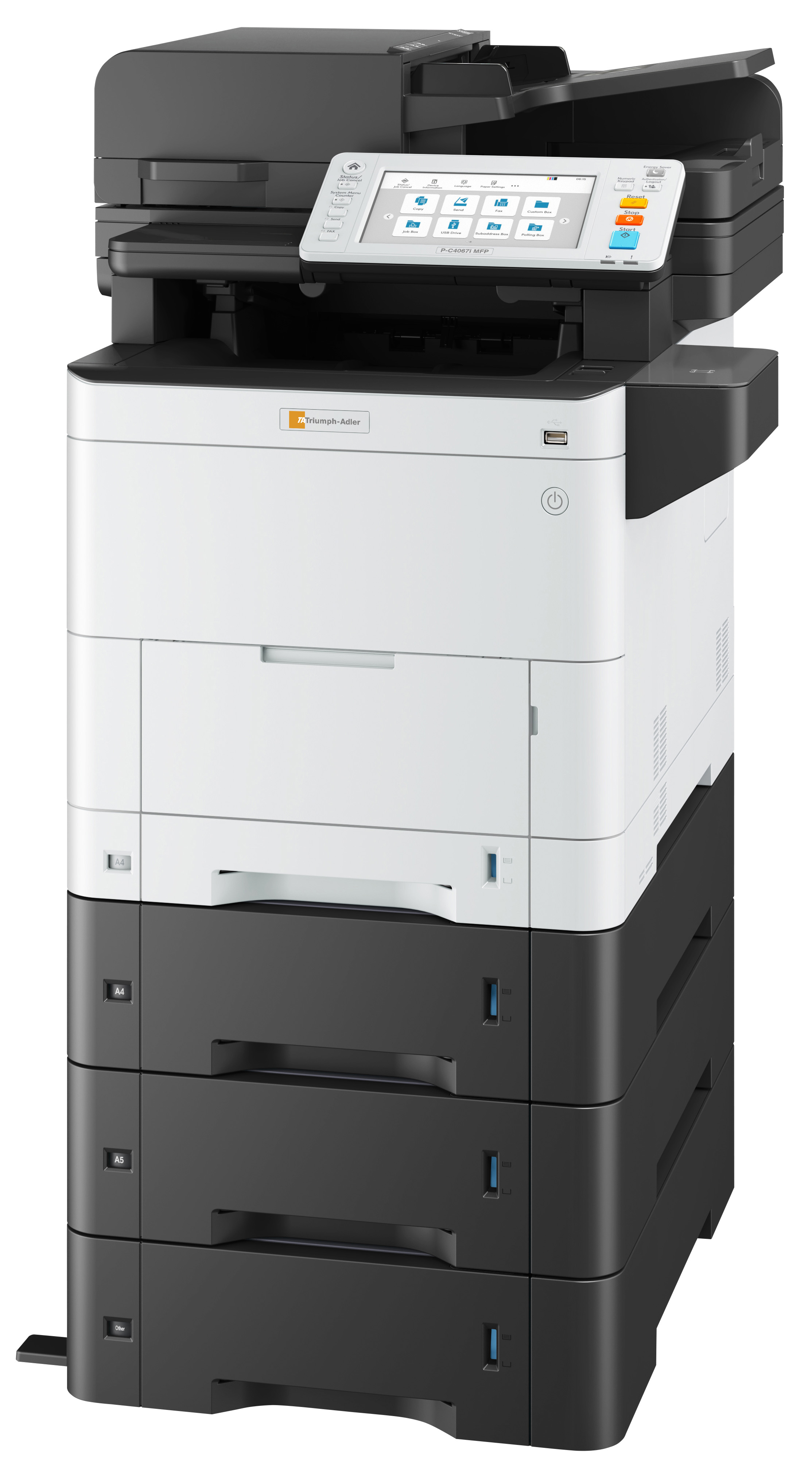 - FunktionenJustierbarer Touch-Screen (17,8 cm), Duplex, Jobreservierung, Programmfunktion, Ausweiskopie, Mehrfachscan, Leerseitenerkennung, N-up, Flüstermodus (Halbgeschwindigkeitsmodus), Funktions-Login, 100 Kostenstellen, u.v.m.