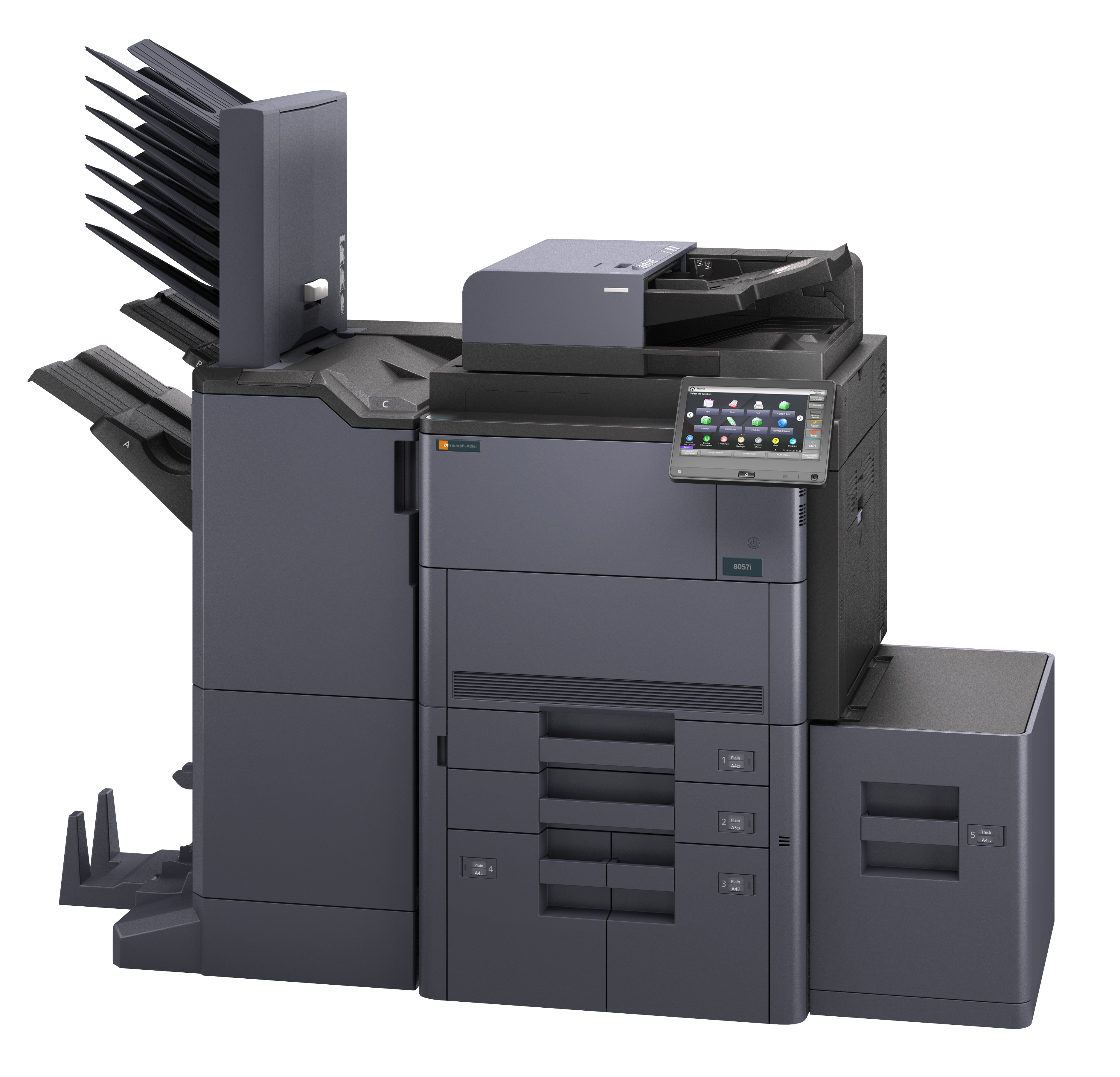 High speed printing and copying with 80 A4-pages per minute. When it comes to printing documents in high speed, this system will be a perfect partner. The systems offer optimised performance, which is evident from the rapid output of the first page. Due to the technical innovations in the fields of quality, productivity, reliability and security almost every requirement can be handled easiliy. The paper management offers high flexibility due to a paper capacity that can be expanded to 7,650 sheets from eight paper sources. Paper weights up to 300 g/m² and paper sizes up to A3+ are additional features that increase flexibility. Numerous options in finishing enable the user to prepare brochures or tri-folded letters. At the same time, integrated OCR text recognition guarantees significantly improved efficiency. Scans can be transformed into new, editable and searchable files that can be stored in a pre-defined folder at just the touch of a button. The dual scanner with ultrasonic sensor for multi-feed detection ensures additional effectiveness.